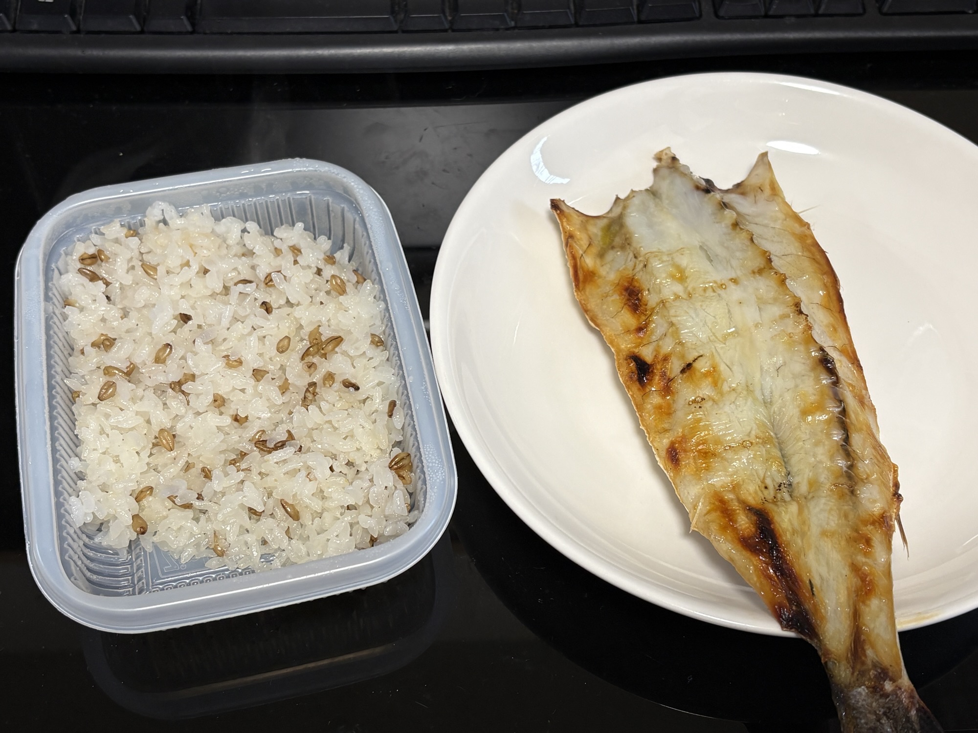 P:約4g / F:約0.5g / C:約53g - 自家製カマス一夜干し(骨付き・焼く前135g)