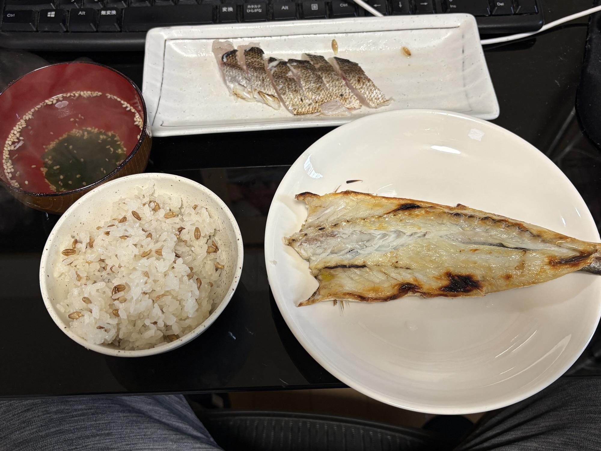 P:約18g / F:約4g / C:0g - 自家製カマス一夜干し(骨付き・焼く前132g)