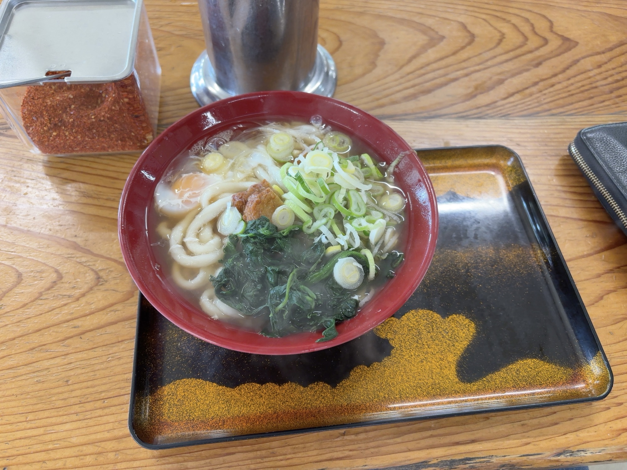 - 内容:【うどん(じゃこ天、卵、ほうれん草)】